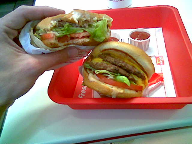 In-n-out is a cluster-eff as the whole wait-for-your-food-before-you-grab-a-table cycle of life has been abandoned, but Alex finagles an 8-top by pretending he’s Jesus and blessing the group that’s about to leave. Then he asks them for their leftover fries, sprinkles holy water on them, and eats. Here’s what I ate…