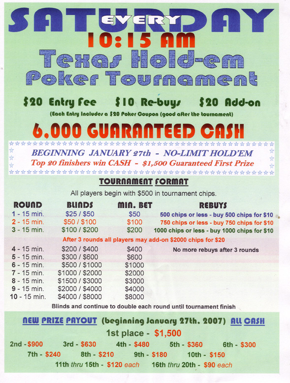 Saturday NL Hold'em Tournament Info