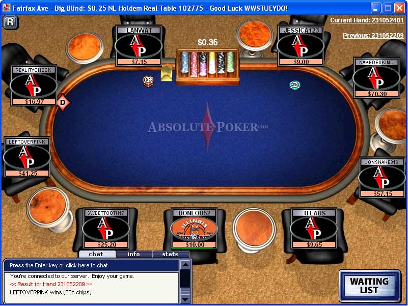 - Absolute offers weekly reload bonuses and draws enough traffic to clear them; it's a good site to build (or rebuild!) your bankroll