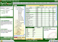 | Party's software has improved dramatically since its introduction in 2001. While not as feature-rich as other sites, Party's software offers clear and simple graphics and the features we think are most critical...table stats, real-time HHs, bet and pot amounts, intuitive betting buttons. Party's lobby info (no flop%s) and session stats need to be improved, but overall, we think this is the best software (and site) for regular players. Note: in Feb 06, Party upgraded its lobby to include filters to help table selection; still no flop %s, though. If you multi-table, you can play up to 10 tables at once and there's a unique multi-table feature that resizes your tables to fit your monitor. PokerTracker supports both Party's ring game and tournament hand histories. Party also offers blackjack and side-betting at the table; it's perfect for action junkies who want to burn off a few dollars. |
