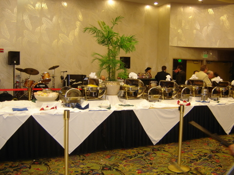 The night started at 6p with a free catered buffet. Note to future attendees: the Commerce does a free-roll buffet right with real entrees and even a carving station, not just some anemic appetizers. You can have a look at the spread in the photos below. Ok, it's not the Mirage buffet, but it was very, very good. And priced right!